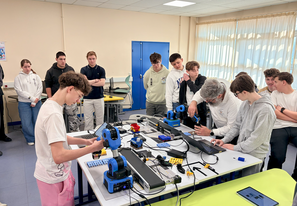Ils ont notamment pu découvrir le pilotage d’un bras robotique industriel Niryo à l’aide d’un outil No-Code, offrant ainsi une approche accessible et immersive des technologies utilisées dans le monde industriel.